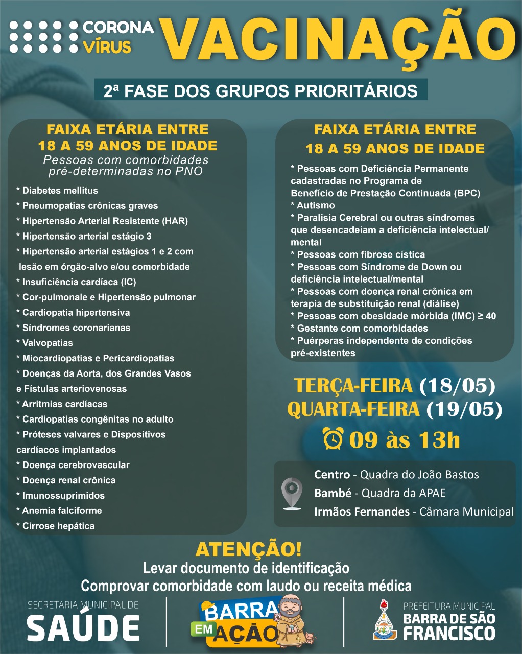 Vacinação continua na sede e interior de Barra de São Francisco
