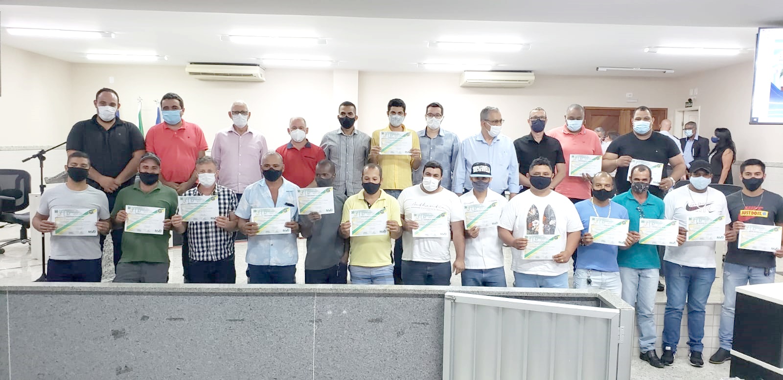 Ao final da solenidade, foram entregues os certificados do Curso de Formação de Operador de Máquinas Pesadas, realizado no último dia 24 de setembro, pela Secretaria Municipal de Desenvolvimento Econômico e Geração de Empregos e Secretaria Municipal de Transportes e Estradas, em parceria com a MVB Cursos.