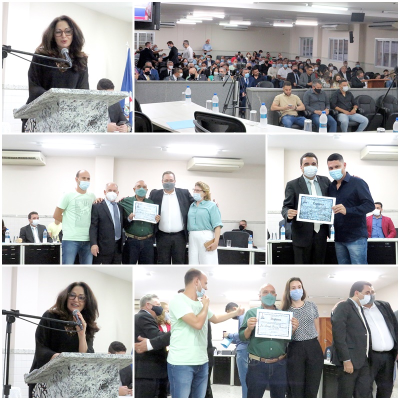 Prosseguindo foram convidados a receberem seus títulos Ex.Srª Maria Rita Pereira – Vereador Lemão Vitorino autor do Projeto de Lei 001/2021