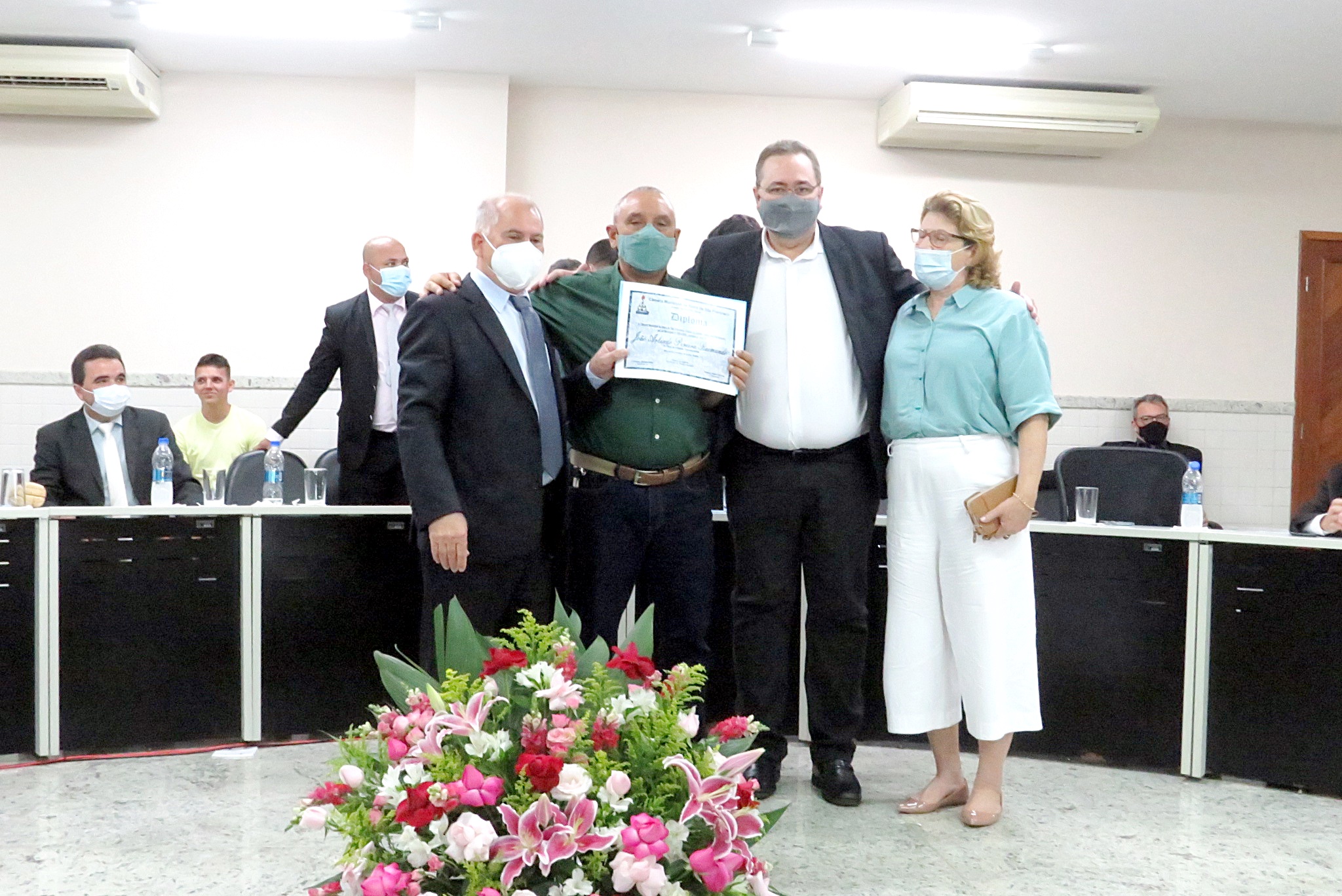 Inicialmente a mesa de trabalhos foi composta pelo Presidente Ademar Antonio Vieira, (Lemão Vitorino), o Vice-presidente Rafael Malaquias Venâncio (Rafael do Hospital), o 1º secretário Leandro Gomes dos Santos (Leandro Ais) e o vereador Emerson Lima – líder do Executivo na Câmara, ao lado dos seus pares, vereador Higor Soares – vereador Jair Fernandes Filho (Jair Carabina), vereador Reinaldo Neri (Borrinha), vereador Sargento Farias, vereador Jadeir Brum, vereador George Steferson Felismino Ferreira (Teco Ferreira) e vereador João Luiz Cozer.