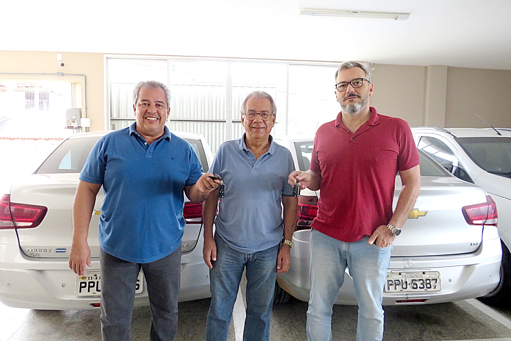 Ladeado pelo Contabilista Waldeles e pelo Procurador Luciano Moura, José Pimenta representando a PMBSF, recebeu os veículos
