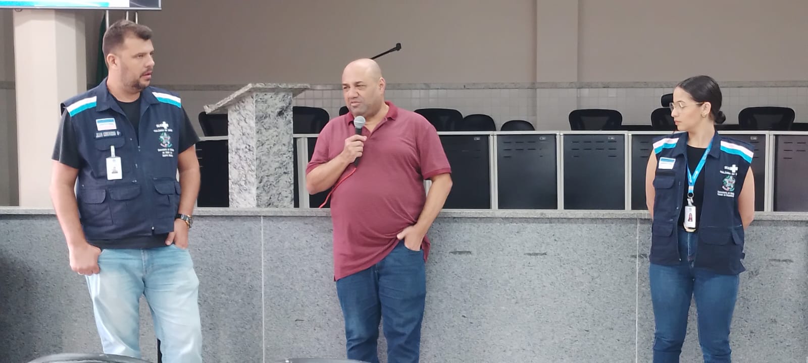 Antes da explanação do veterinário, o secretário municipal de Saúde, Elcimar de Souza Alves, falou para os mais de 100 profissionais de Barra de São Francisco, Água Doce do Norte e Ecoporanga que estiveram presentes na Câmara de Vereadores.