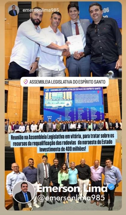 Os vereadores Emerson Lima, Leandro Ais, Carlim da Dengue, Jadeir Brum, Elso Alves, Elivan Ramos, Sargento Farias, Rubens Delazari e Wilson Mulinha, estiveram acompanhando o prefeito Wanderson Melgaço prestigiando o evento que vai viabilizar as obras contempladas (33,05 km da ES-164; 43,6 km da ES-245; 15,26 km da ES-137; 40,77 km da ES-080; e 36,8 km da ES-220) com valor total estimado em R$ 353,4 milhões.