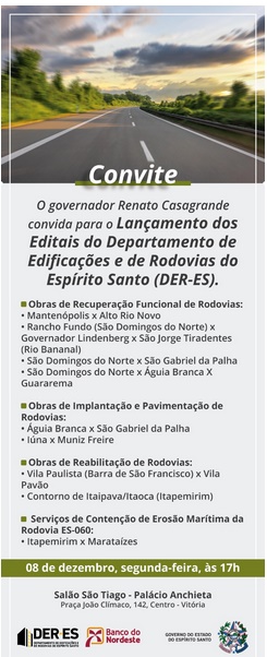 A sessão legislativa desta segunda feira dia 08, foi adiada devido ao lançamento dos editais do Departamento de Edificações e de Rodovias do Espírito Santo - DER-ES, convite este feito pelo governador Renato Casagrande para anunciar as obras de recuperação funcional de rodovias diversas da região noroeste do estado. Com isso a Câmara Municipal através de seus vereadores estará prestigiando o evento, já que no edital encontra-se a reabilitação da rodovia que liga o distrito de Vila Paulista ao município de Vila Pavão.