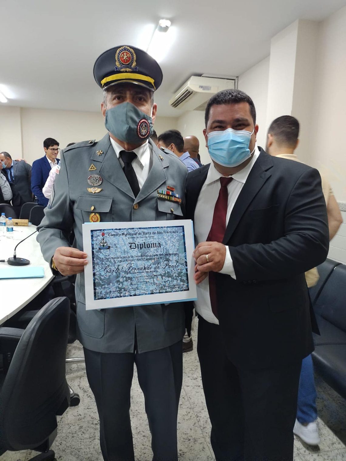 Carlos Fernando durante muito tempo prestou relevantes serviços naquela unidade e a proposta do parlamentar francisquense, tem como objetivo prestar uma homenagem justa e reconhecer as realizações concretizadas pelo militar, o qual honrou à corporação e à sociedade francisquense.