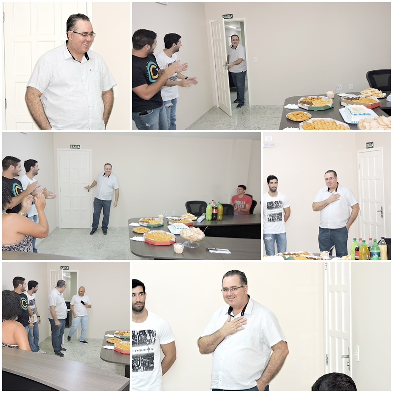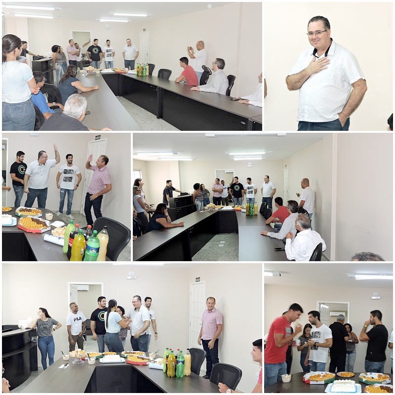 Bolo, salgadinhos, sucos, refrigerantes e muita alegria, foram os componentes desta manifestação carinhosa com que funcionários de diversos escalões estiveram brindando o presidente Juvenal Calixto.